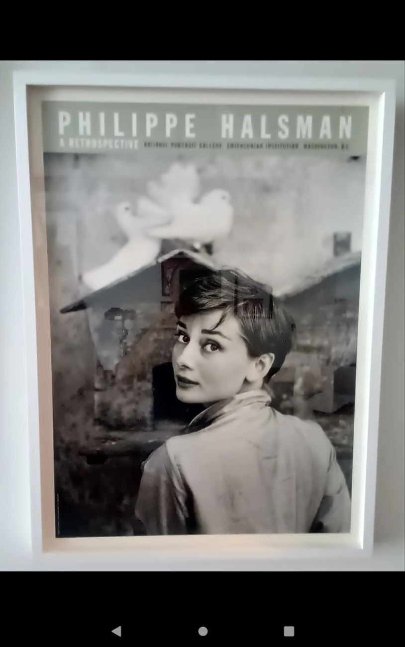 A rare exhibition poster produced in conjunction with 'Philippe Halsman- A Retrospective' at the National Portrait Gallery, Smithsonian Institution, 2001. The American photographer was best known for his portraits for Life Magazine from the 1940s through to the 1970s, such as this cover image shot of Audrey Hepburn with doves.